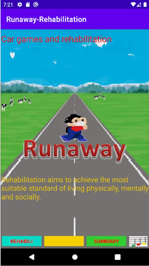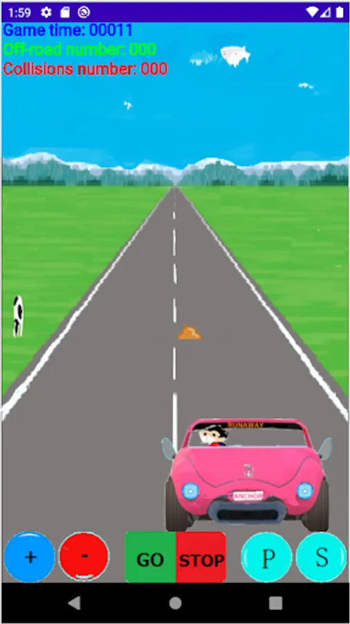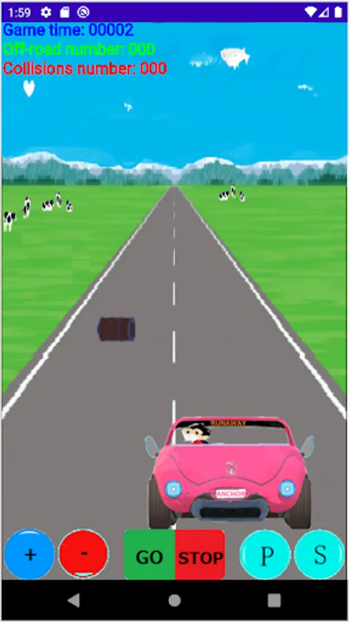It is a game to drive a car avoiding drums and excrement on the road in the meadow.