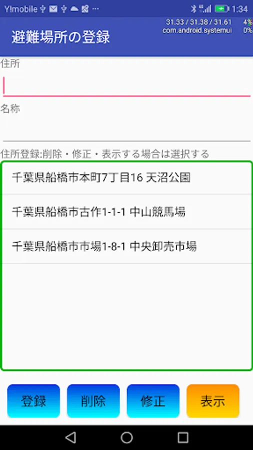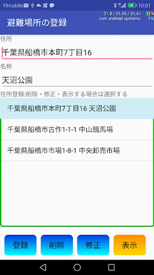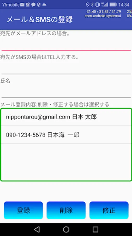 ※入力してから登録、選択してから削除・修正ボタンをタッチします。