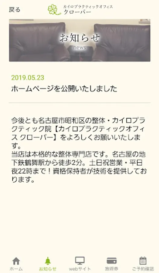 We have released the official app of the Chiropractic Institute [Clover] in Tsurumai, Showa-ku, Nagoya, Aichi Prefecture.