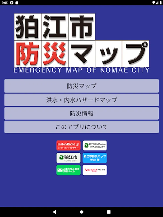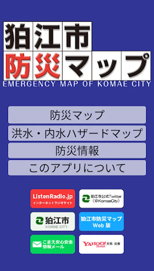 ・The information posted in this app is based on the "Komae City Disaster Prevention Guide (issued in March 2021)" and the "Komae City Water Hazard Map (issued in June 2021)".