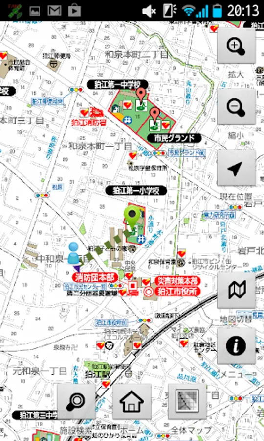 "Komae City Disaster Prevention Map" is an application that allows you to view maps showing the locations of disaster gathering places and evacuation centers on your smartphone.