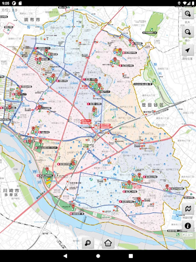 In creating the topographic map of the "Komae City Disaster Prevention Map" posted in this application, with the approval of the director of the Geospatial Information Authority of Japan, the numerical map (basic national information) issued by the same institution A digital map (basic national land information) and an electronic basic national land map (place name information) were used. (Approval number Hei 29 Jousai, No. 1176)
