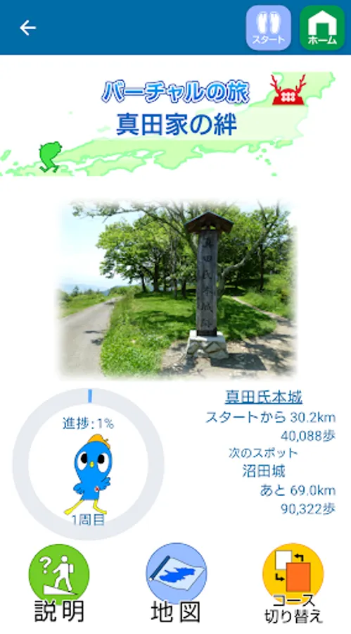 [Virtual trip] which is a part of "Ueda city health promotion challenge point system" which Ueda city has started from June, 2015 can enjoy with application.