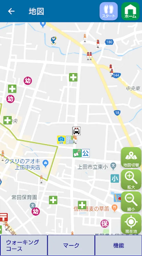 ・ The copyright of Ueda City's information, photos, pictograms, etc. provided in this application belongs to Ueda City or Central Geomatics Co., Ltd.