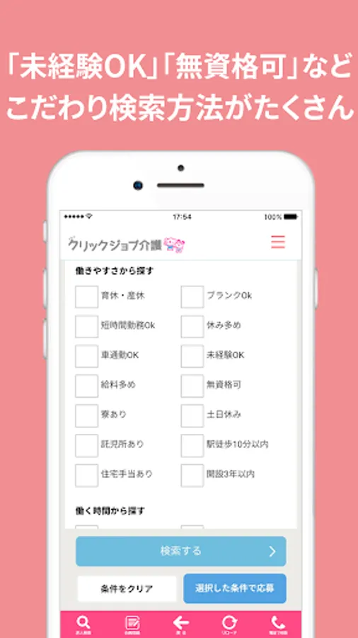 クリックジョブ介護は、日本最大級の介護転職支援サービスです。お住まいの地域の求人情報に精通したエージェントが、貴方のご希望に合った求人をご紹介いたします。