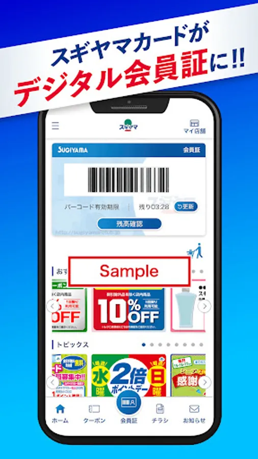 The Dragsugiyama official app delivers great deals to your smartphone. By setting the Sugiyama Card to the app, it can also be used as a digital membership card.