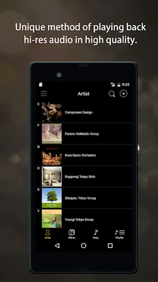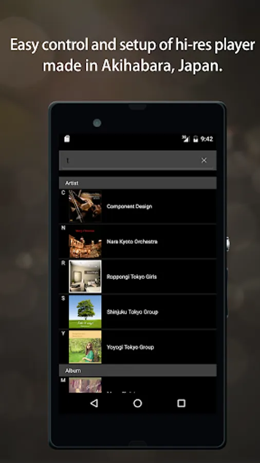 Place artwork image files in the same folder of your music file, and the artworks will be displayed on the smartphone screen, when you are playing music. It also works with FLAC and DSD, displaying the artwork in priority.