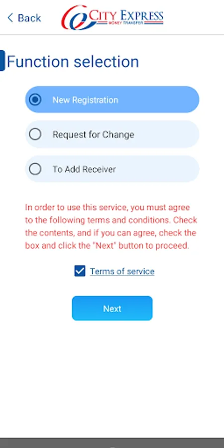 1. Membership registration for Remittance Service