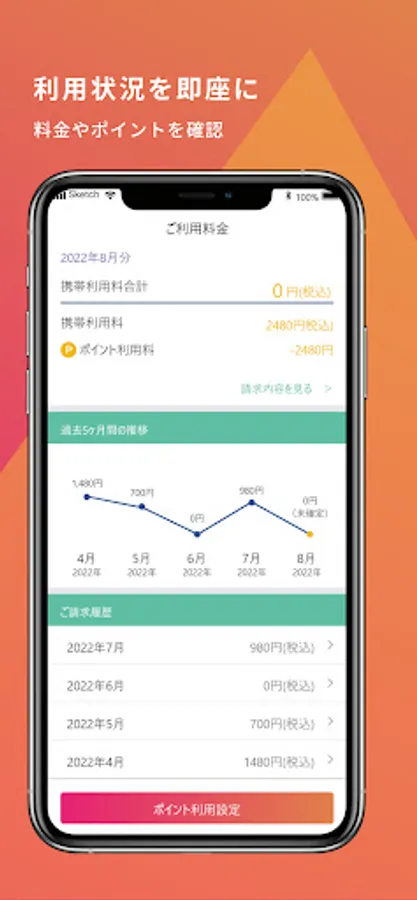 ・ You can use points that can be used for mobile phone charges from the app.
