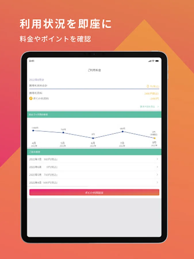 ■ You can check monthly usage charges and remaining data (giga), and use points from the app.