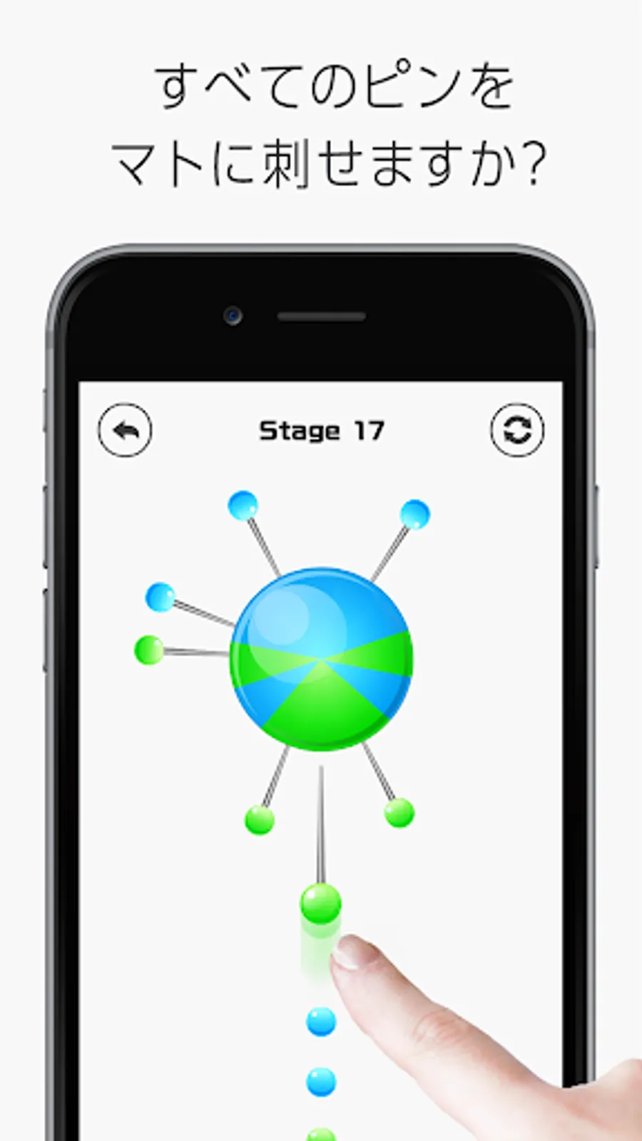 タップでピンを飛ばして的にぷすっと命中させるだけ!