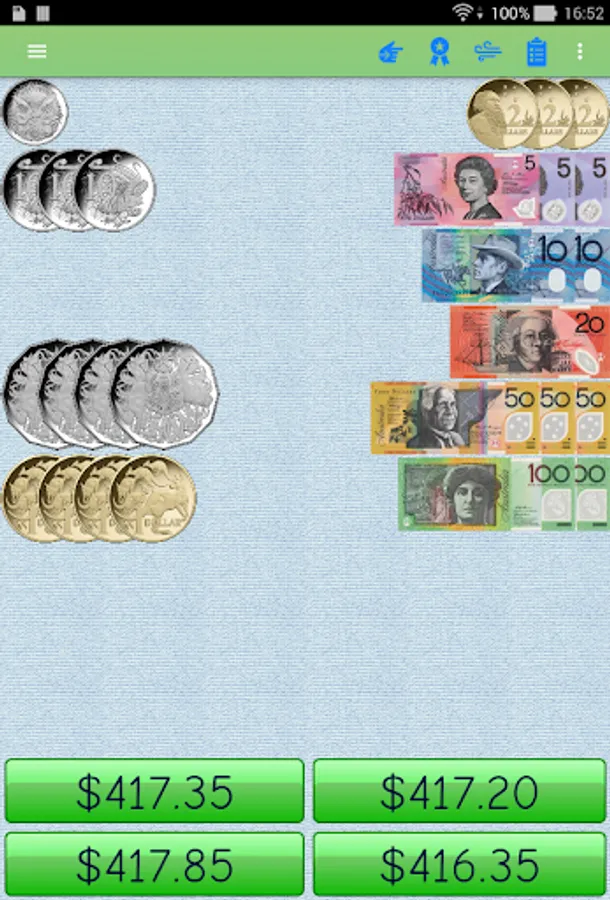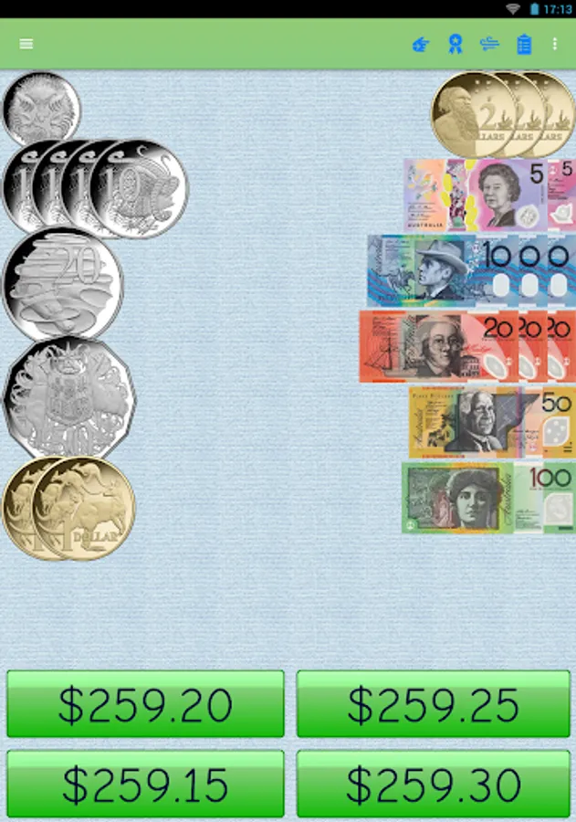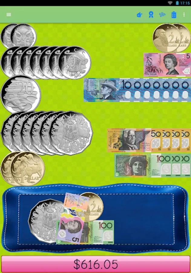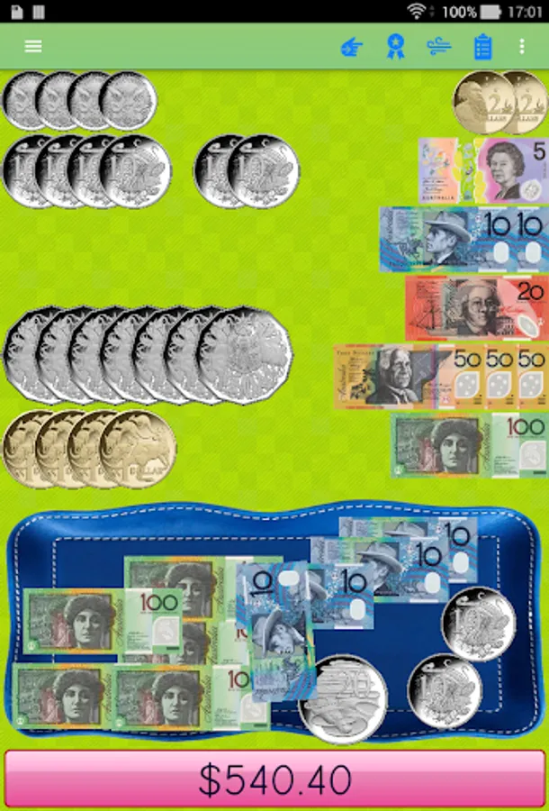 This App is for the practice of calculating Australian Dollar (coins and banknotes) for kids.