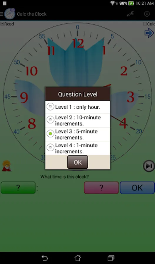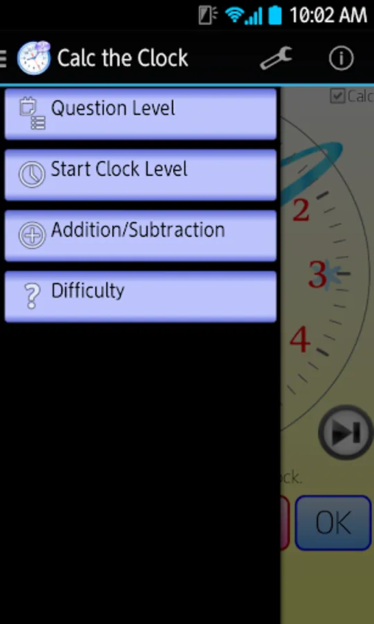 In addition to "Question Level" above, various settings are possible from the menu button.