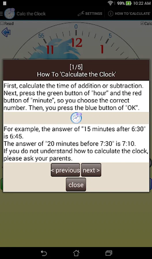 This application is to practice the calculation of the clock in the child's arithmetic.