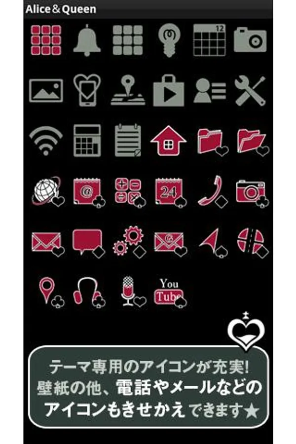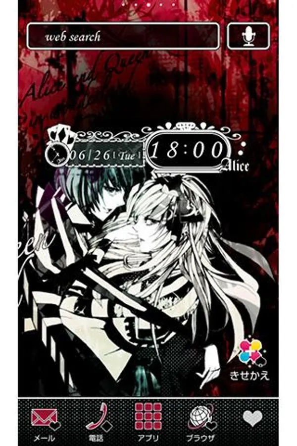 Gothic taste Kisekae theme of which was the theme of Alice in Wonderland. In the background of crimson rose Alice and appearance of the Queen of Hearts drawn in black and white shine in brilliant!