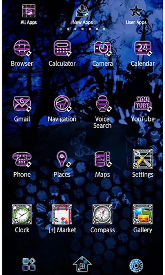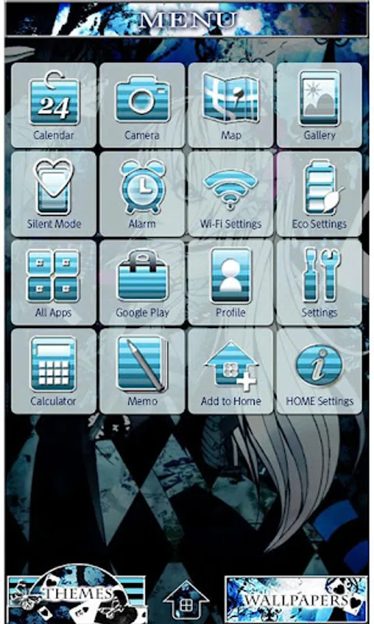 The wallpaper and icons are bursting with gothic romance.