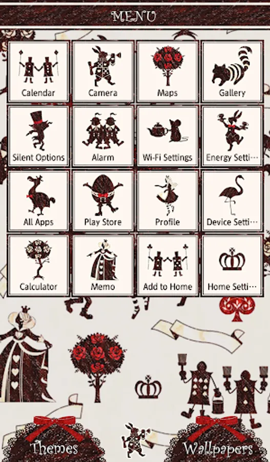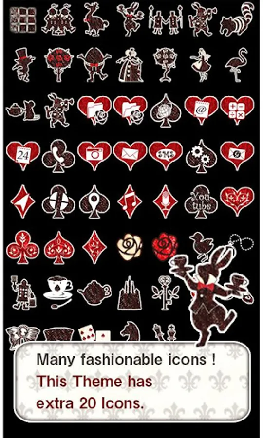 ★Extra icons added!★A pleasant afternoon scene of Alice, the Mad Hatter, the Queen of Hearts, and the Cheshire Cat dancing together.