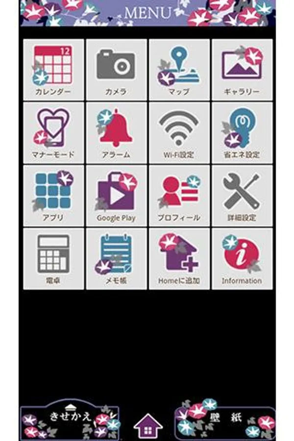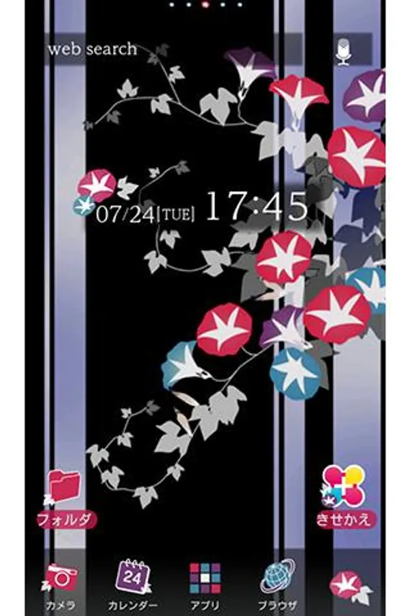 Cool gradient line and vivid Kisekae theme, such as a combination of morning glory is like yukata of the handle. During the summer ♪ on Kisekae to smartphone also cool design