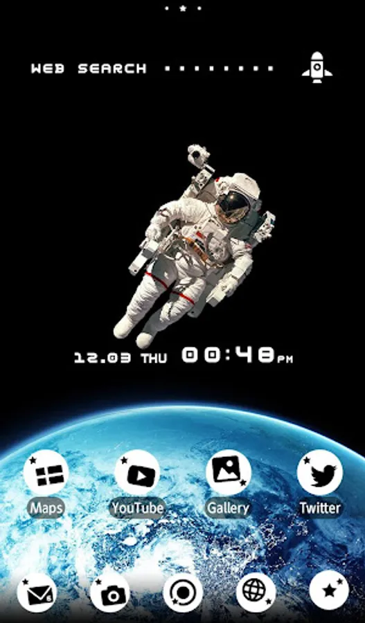 Take your smartphone into outer space with this astronaut theme! The icons are space-themed as well, so get ready to blast off!