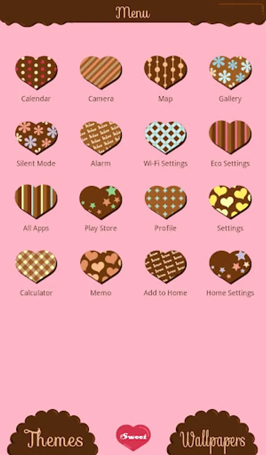 Heart-shaped chocolates with different designs all lined up make for a sweet and lovey theme.