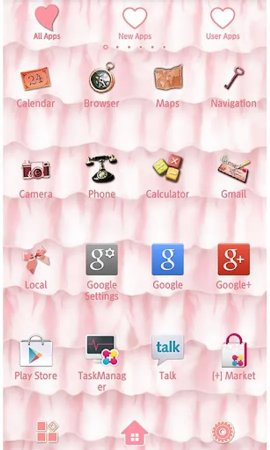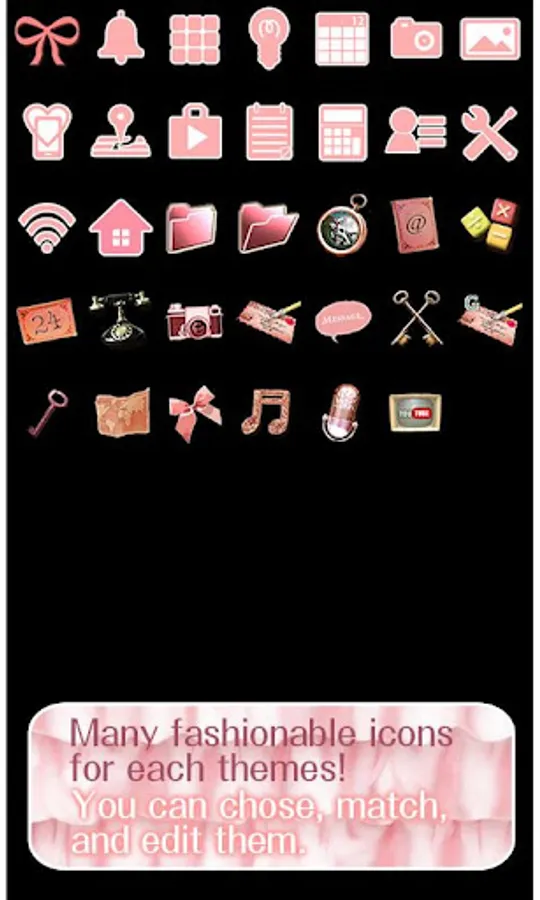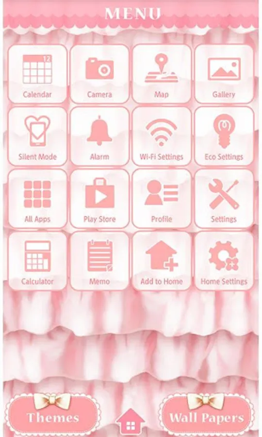 This theme is simple and cute! Layers of pink frills and sparkly effects make your screen look adorable!