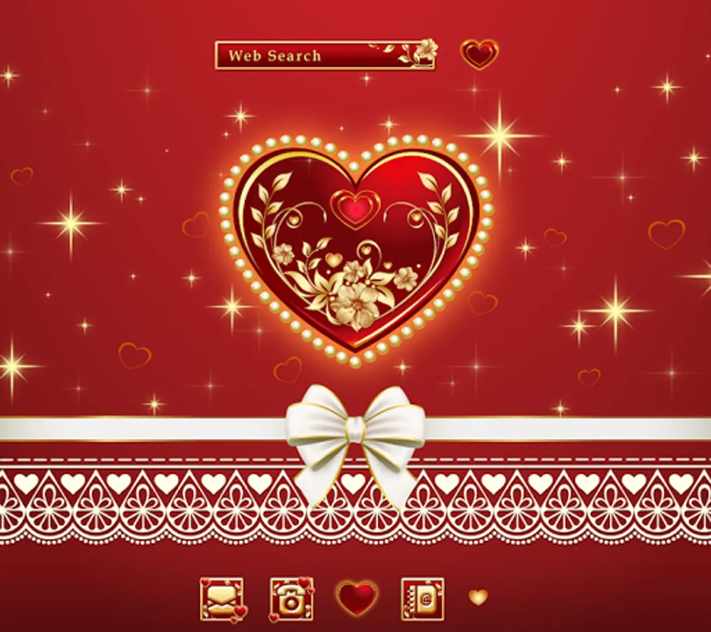 The heart endowed lace accents the white ribbon and brilliant red. Happy Valentine.