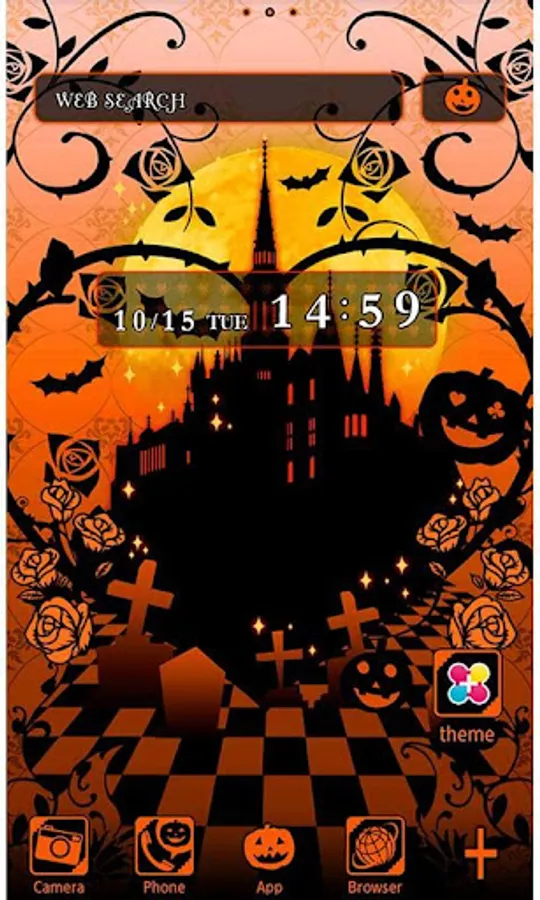 Decorate your phone with this cute and gothy Halloween theme featuring a Spooky Halloween Fairy Tale scene with a castle and graveyard!