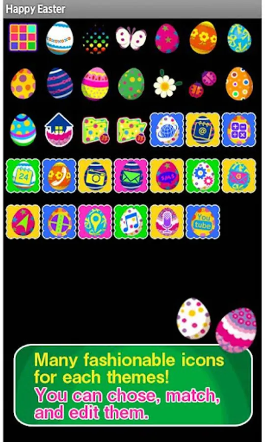 Cute colorful Easter design filled with lots of yummy Easter eggs. Decorate your menu icons with funky pop colors. Let's have an eggcellent Easter.