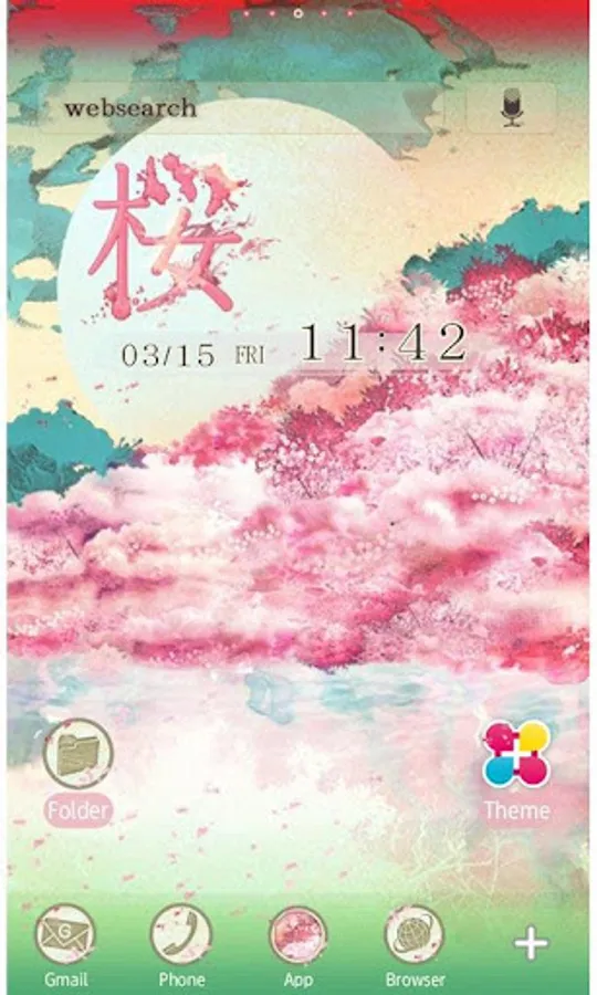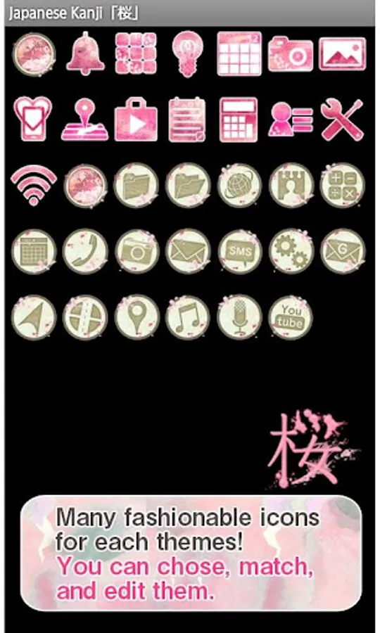 The Japanese Kanji and beautiful cherry blossoms in slender design. This Kanji means "cherry blossom". The material is looks like handmade Japanese paper.