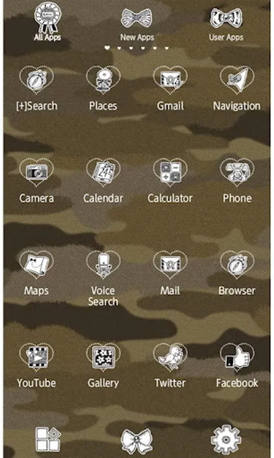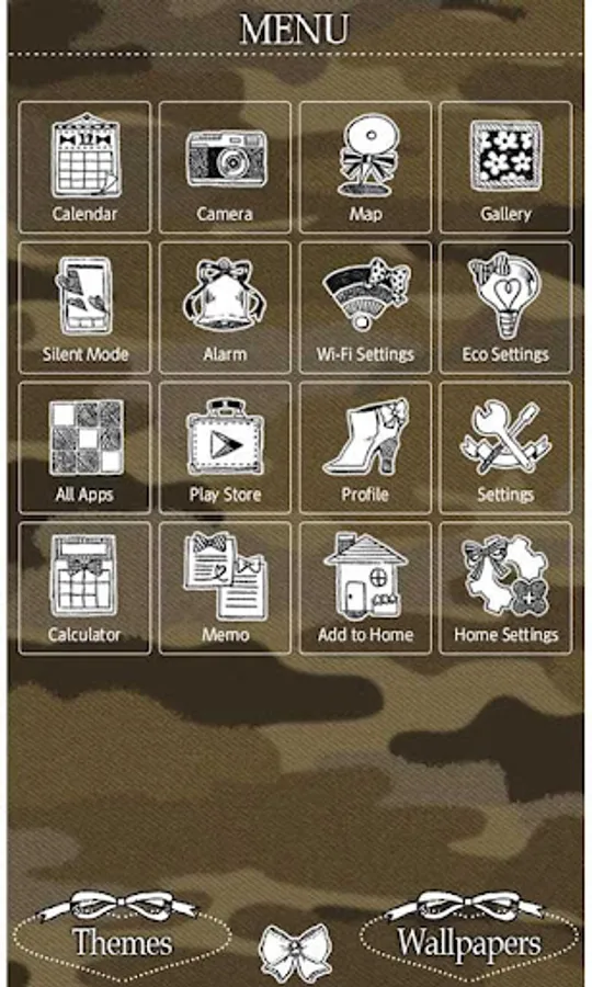 Camo Themes come to [+]HOME! The girly widgets and icons are an adorable accent to the brown tones of the wallpaper!