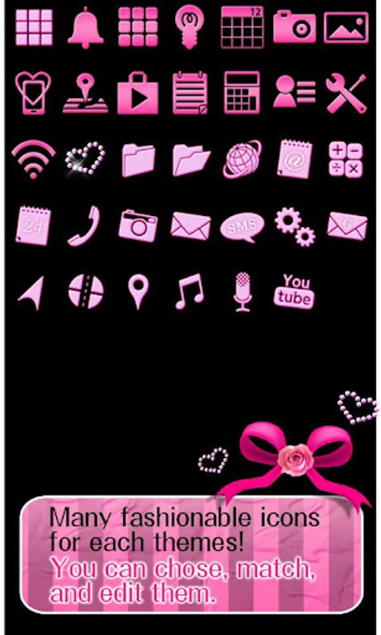 A mature Theme with black and pink stripes, hearts, a rose, and a ribbon. Could there be a cuter combination?