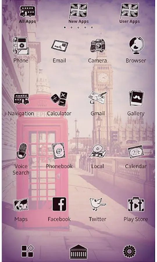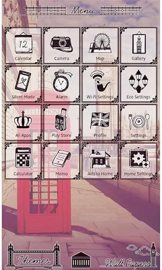 Everything you can want from an English fantasy are in this theme! A red phone booth, Big Ben and even a double-decker bus! Brilliant, mate!
