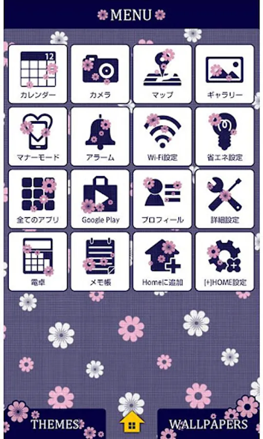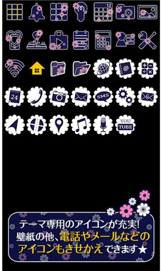 Cool Japanese style girly Kisekae theme in navy with pink and pop-studded white florets!