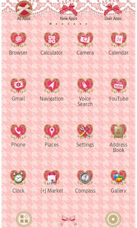 Laces and a large ribbon sweetly arranged on a soft pink hounds tooth check. Matching icons come in gold and burgundy.
