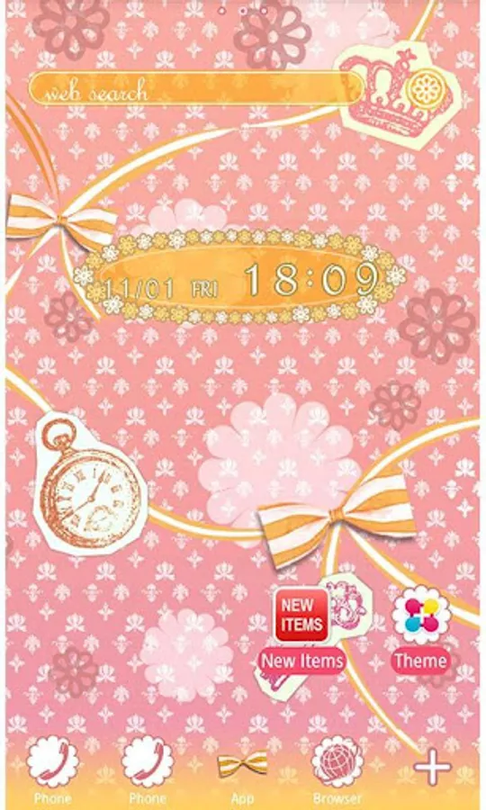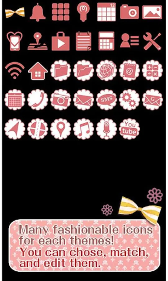 This cute and girly theme has a baby pink background with daisy shaped details. The daisy yellow colored bows make your phone look girly and full of energy!