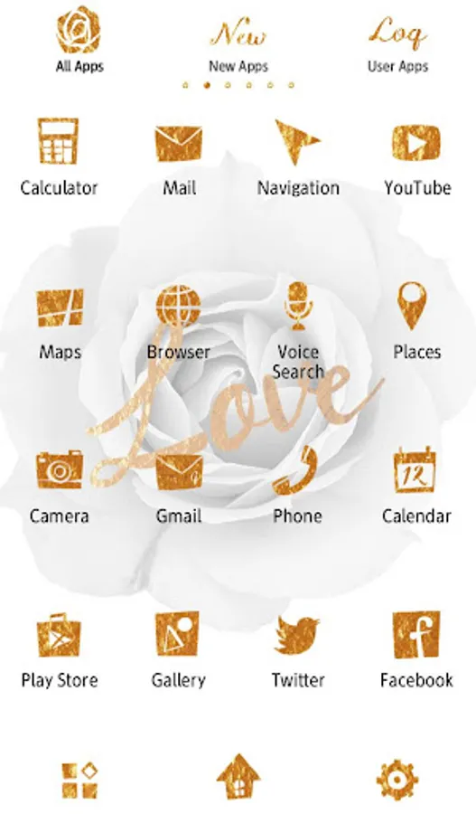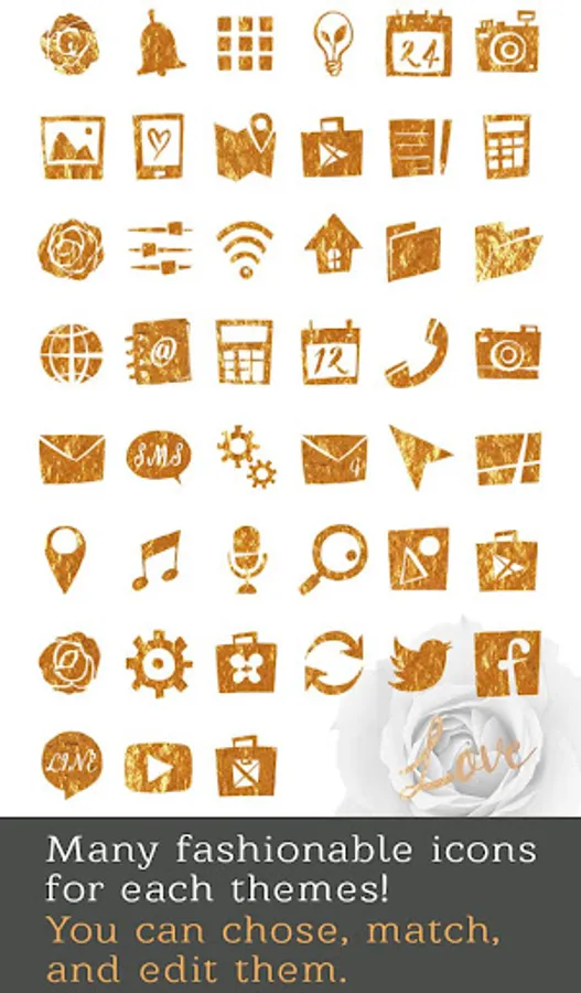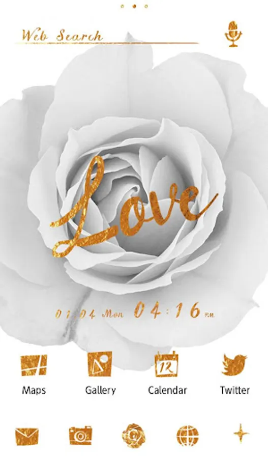 This stylish theme has an artsy black and white rose with gold text. Bring some style to your smartphone with this theme!