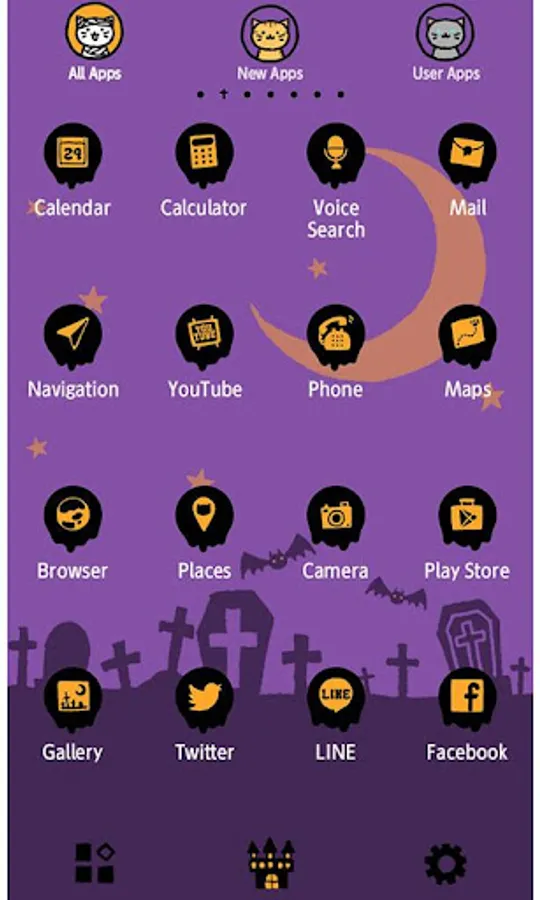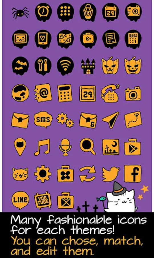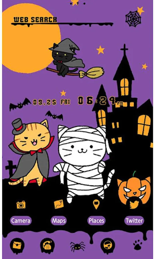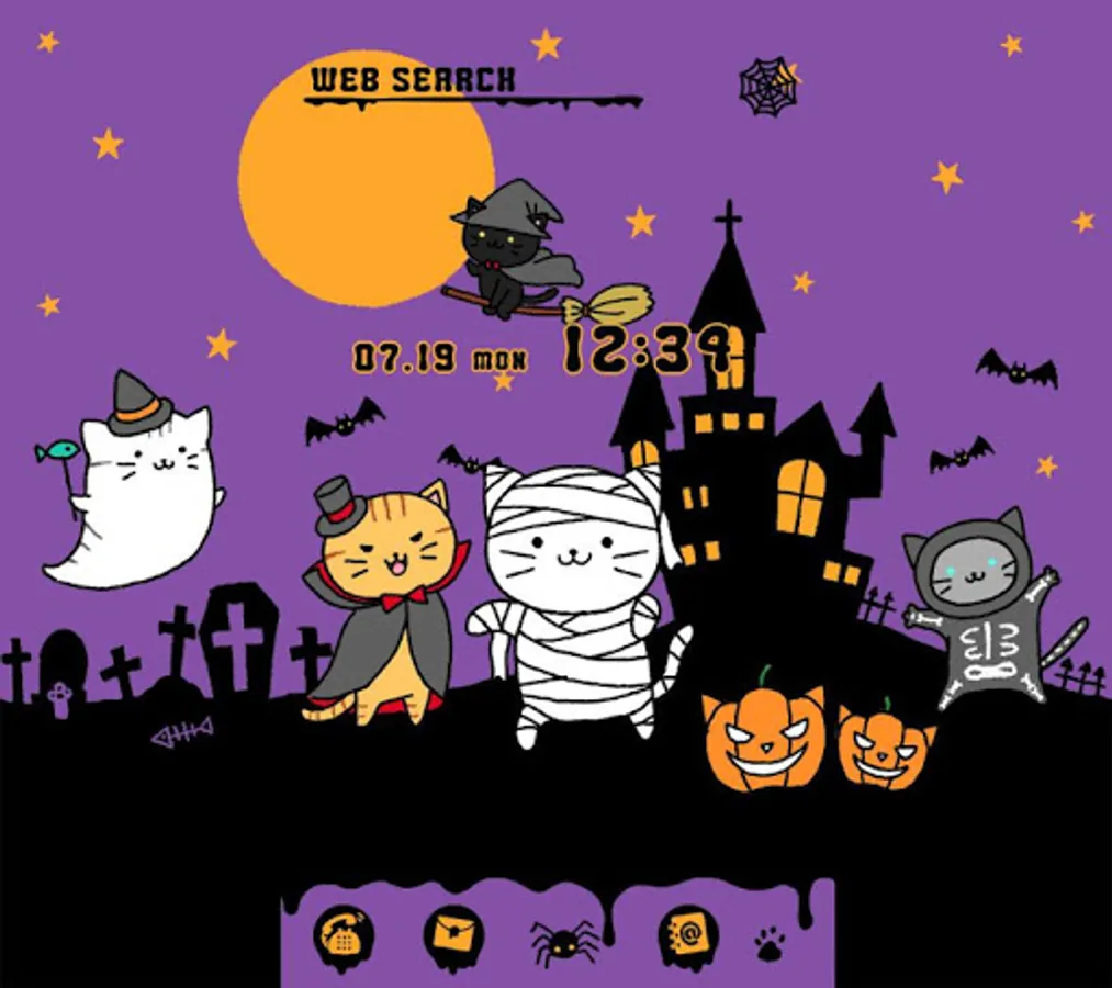 Have you ever seen a cat out trick-or-treating? It sure would be cute, wouldn't it? Bring some Halloween cuteness to your smartphone with this theme!