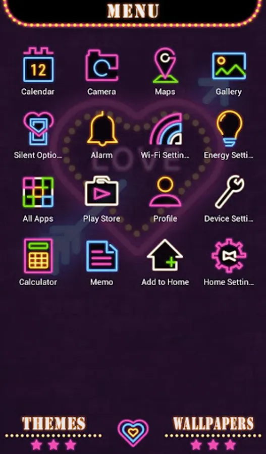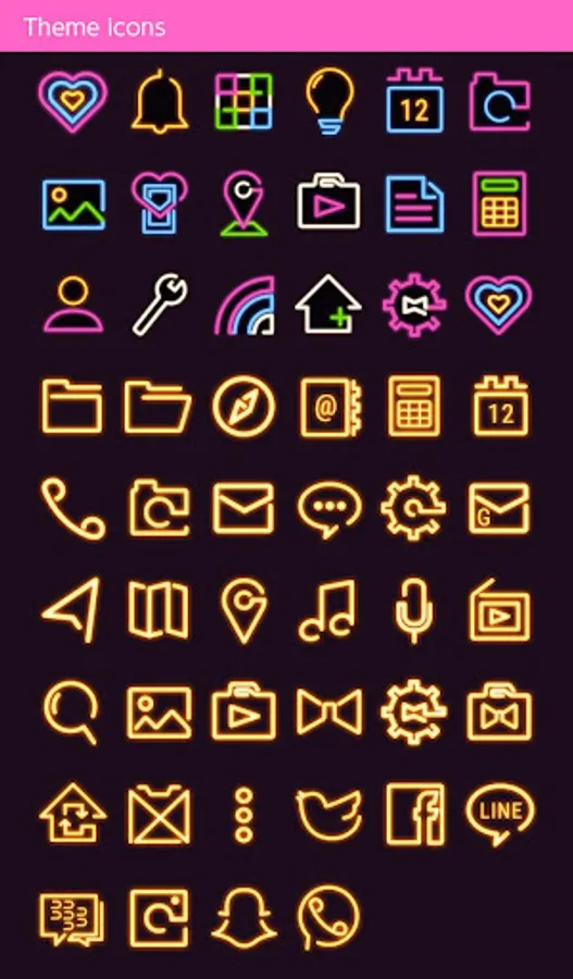 Even the icons and widgets are given the neon trreatment in this stylish theme!
