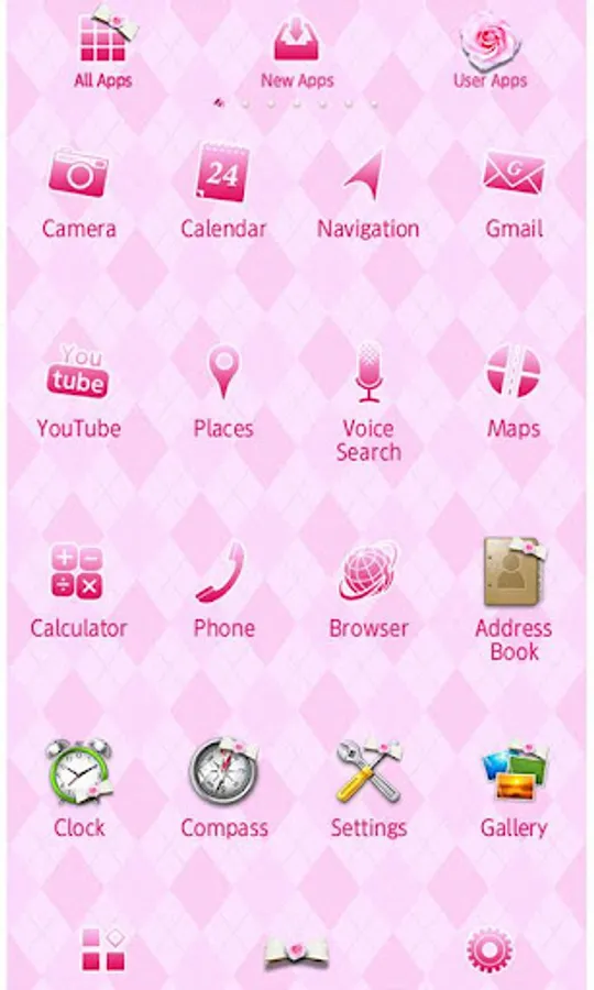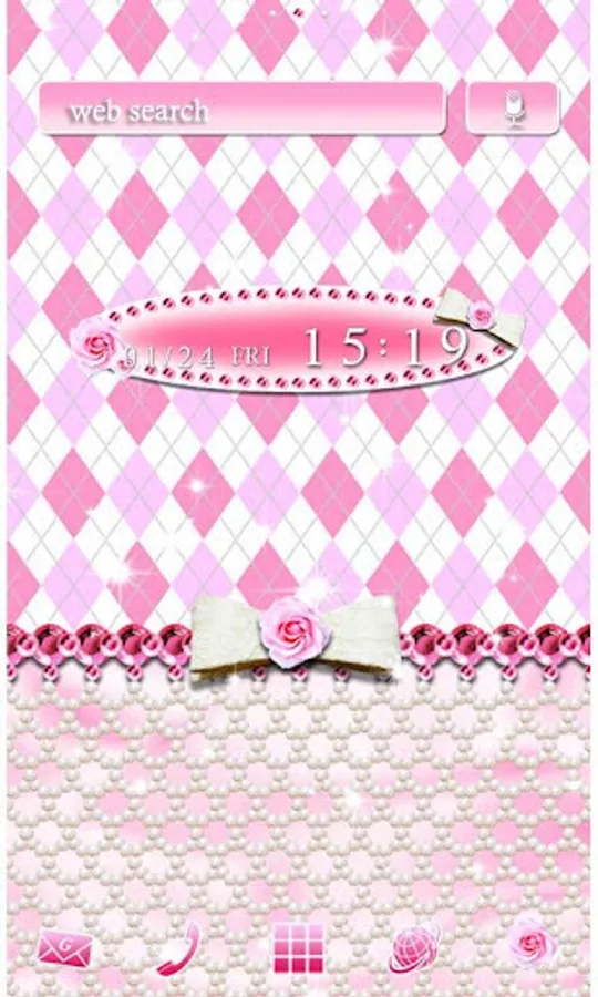 This pink argyle Theme will make your phone super stylish! The pearl, flower and ribbon accents give it a bright touch!