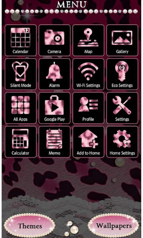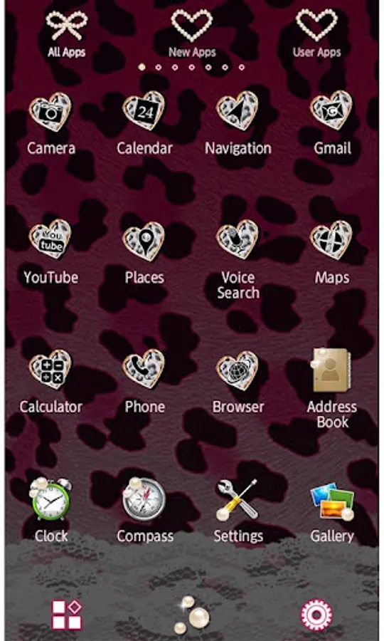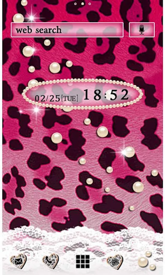 FREE! Shiny white pearls fall onto a bright pink leopard-print background in this Theme.