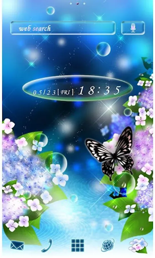 Rhinestones glittering like raindrops accent the background behind beautiful hydrangeas and butterflies. This Theme is perfect for June!