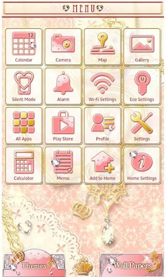 Perfect for those whose hearts are as open as the solid gold one featured in this Theme! The glittering jewels and pink background are the perfect accents♡