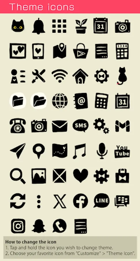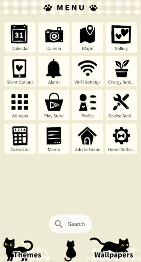 Just by installing it, you can instantly transform your Android smartphone's home screen, app drawer, and menu screen into a cute black cat design.