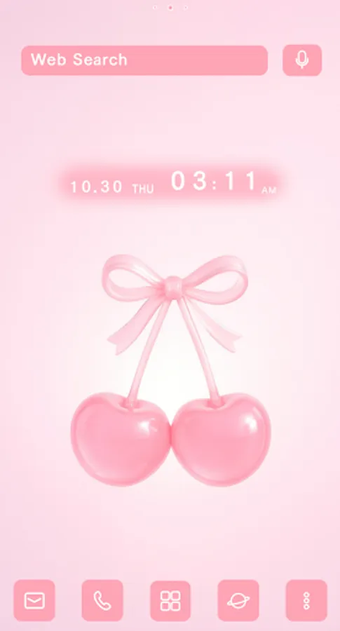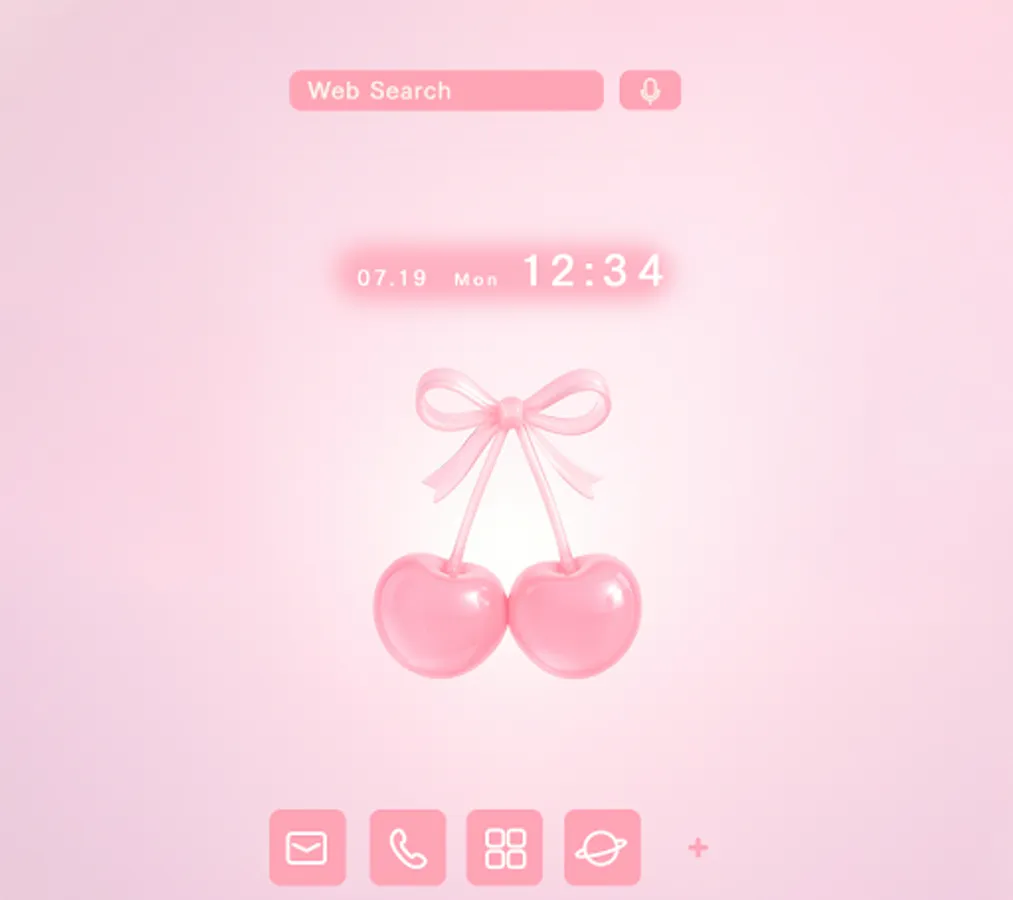 This is a customization theme that includes a wallpaper featuring glossy pink cherries, simply designed icons, and a set of convenient widgets.
