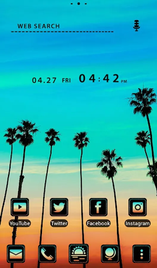 Colorful California scenery. The cocktail-like gradation of the sky and the palm trees give it style.