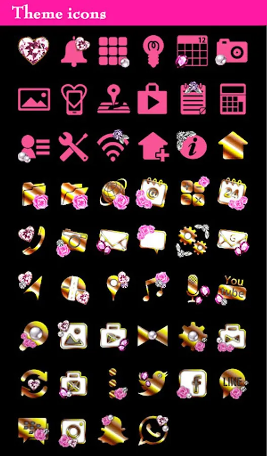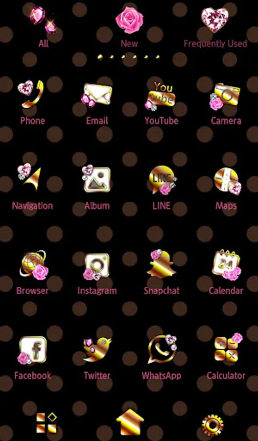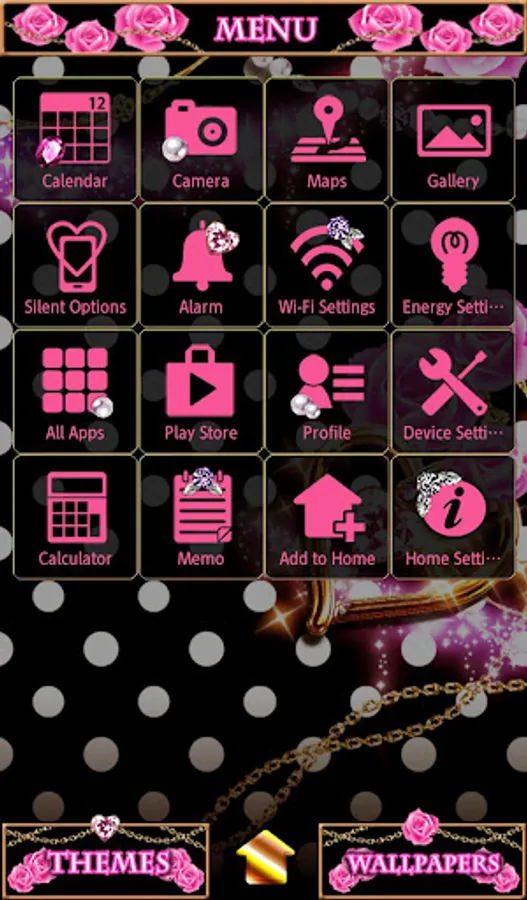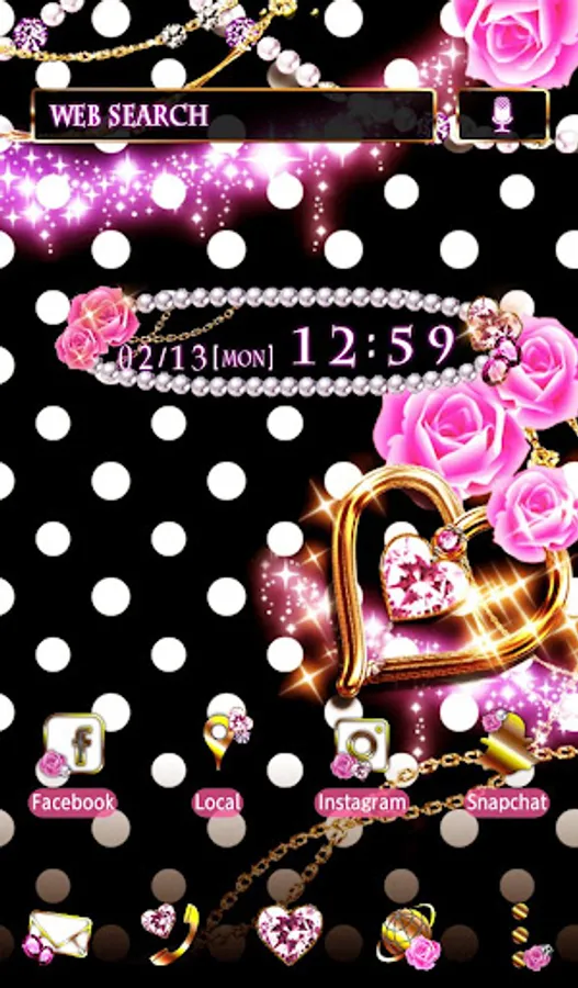 A cute and girly theme with pearly white polka dots on a black background. Pretty pink sparkling roses are a must have for any princess!