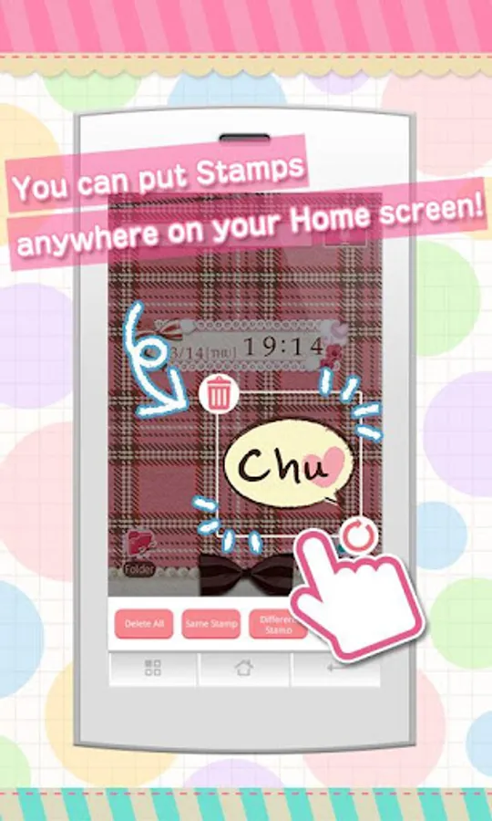 After installing [+]HOME, press and hold on the Home screen to see your Stamp List and select your Home Screen Deco!