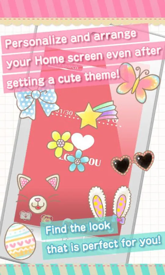 You can use these Stamps in the [+]HOME layout customization app! Personalize and arrange your Home screen even after getting a cute theme! Find the look that is perfect for you!
