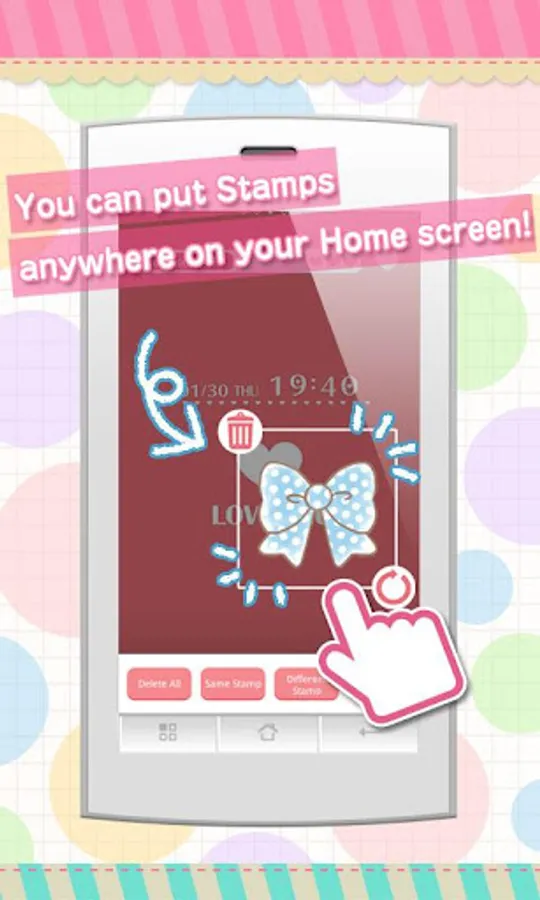 After installing [+]HOME, press and hold on the Home screen to see your Stamp List and select your Home Screen Deco!