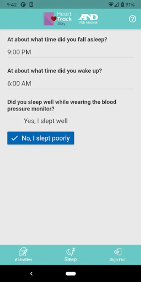 This A&D Heart Track Diary app allows you to record your observations during an ambulatory blood pressure study, such as daily activities, sleep time, and sleep quality. These observations are transmitted securely to your clinician, allowing them to quickly and easily contextualize your blood pressure measurements and increase the accuracy of your ambulatory blood pressure study.